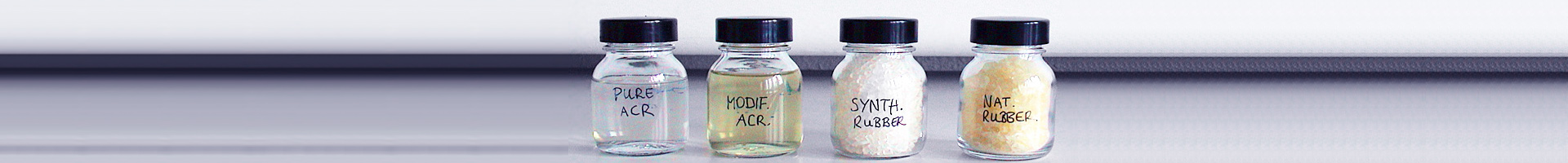 These consist of natural rubber, which is ground and then mixed with a solvent such as gasoline. It will dissolve the rubber and a tough adhesive is created. High adhesion and good shear strength characterize this adhesive. Disadvantages: Average temperature and ageing resistance as well as a lack of resistance to UV radiation and sensitivity to low (below 10°C) and elevated (above 50°C) temperatures.
